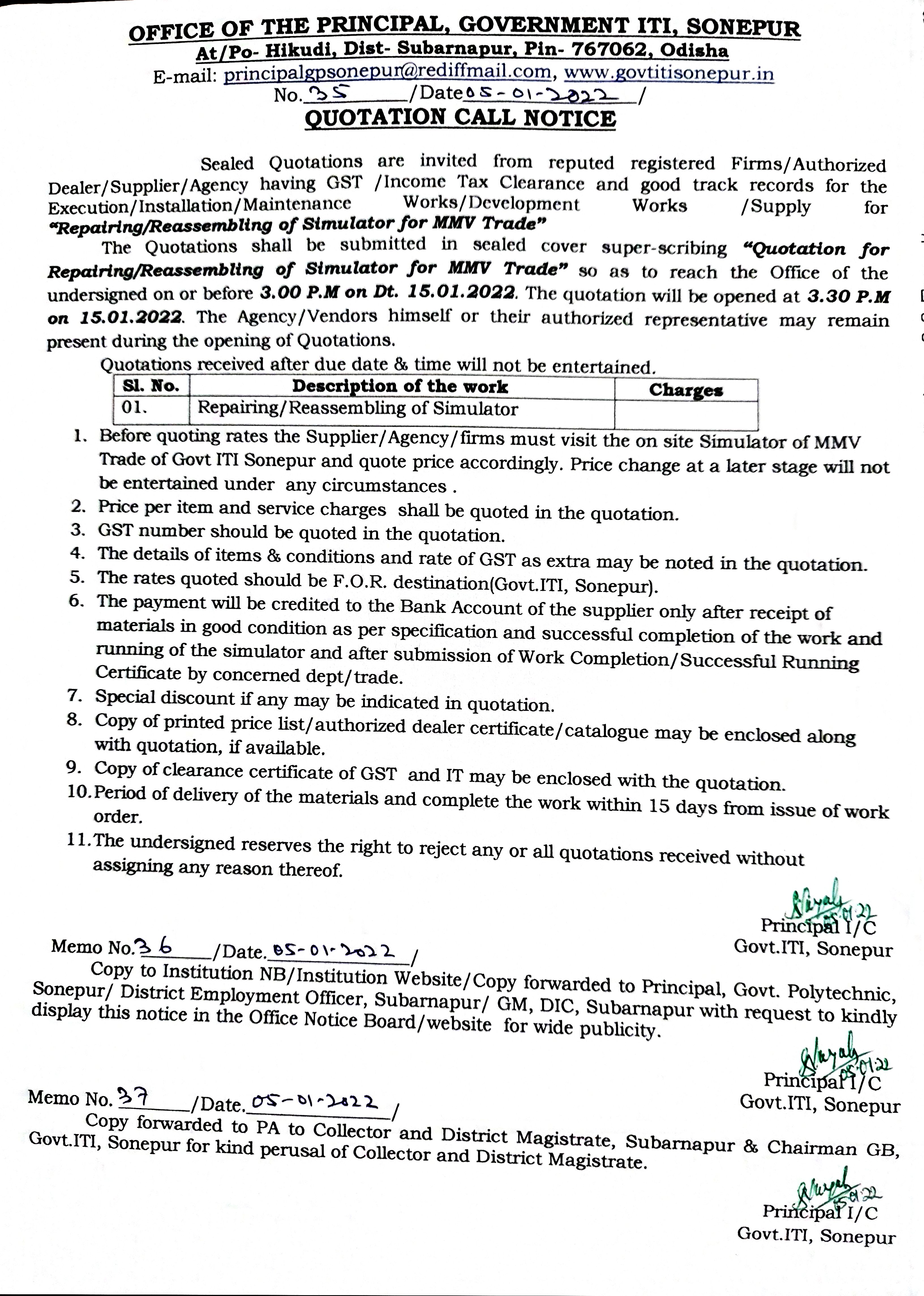 ଶିଳ୍ପ ତାଲିମ ଅନୁଷ୍ଠାନ, ସୋନପୁର, ଓଡିଶା ସରକାର